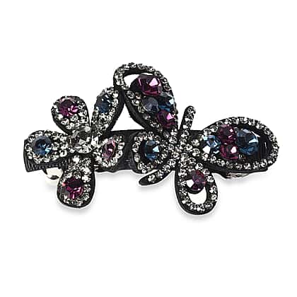 Austrian Crystal Butterfly & Flower Hair Clip - Dark Green