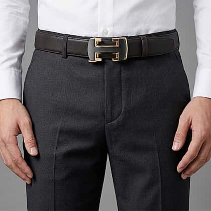 Complete your look with this sleek and structured belt, designed to add a refined finish to both formal and casual outfits. Crafted with a smooth, durable strap, it offers a clean and polished appearance that pairs effortlessly with trousers or jeans. The standout feature is its bold metal buckle, bringing a modern edge and a touch of contrast to the classic design. Adjustable for a comfortable fit, it ensures practicality without compromising on style. Whether worn for work or everyday wear, this belt delivers a smart, put-together look with minimal effort.