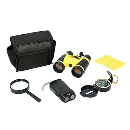 - PERFECT FOUR: The set includes a set of binoculars, a flashlight, a compass and a magnifying glass; all of which are an essential for a trip on the hills