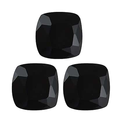 Enhance your jewellery collection with our set of 3 black spinel loose gemstones, each featuring a flawless cushion cut. These gemstones are characterised by their deep, lustrous black shade, making them ideal for creating unique, high-end jewellery pieces.