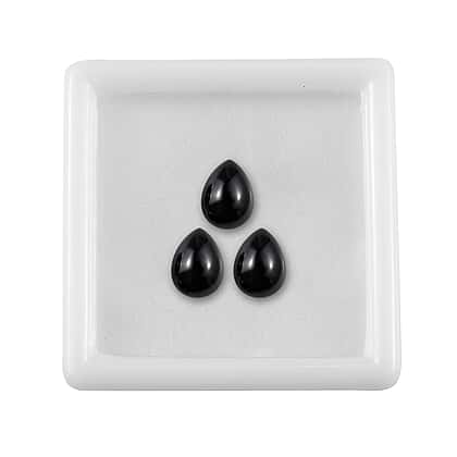 Set of 3 Black Spinel Loose Gemstones in Pear Shape (8x6mm)
