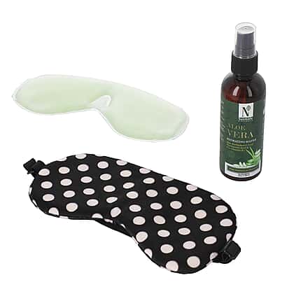 - CONTENTS: Contents of this set are 1xAloe Vera Spray, 1xDotted Design Gel Based Eye Mask and 1xAloe Vera Gel Pack