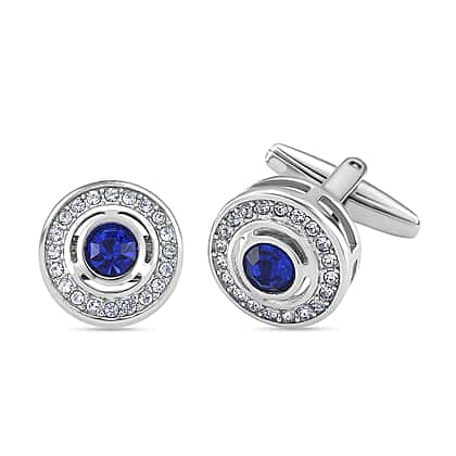 Elevate your formal look with exquisite cuff links, perfect to add a hint of blue to your look. It features deep sapphire-toned crystal centre stones, delivering a bold pop of colour. The centre stone is beautifully framed by a circle of sparkling clear crystals. Crafted in a sleek silver-tone finish, the design feels polished, contemporary, and effortlessly sophisticated. With a classic swivel-back closure, these cufflinks offer both style and ease. They are perfect to be paired with any suit or formal shirt.