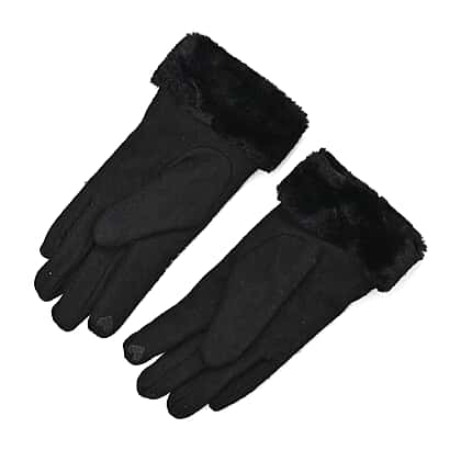 BRAND NEW - 70 % Cashmere Blend Gloves with Ultra soft Faux Fur Cuff (One Size) with touch screen tech - Black