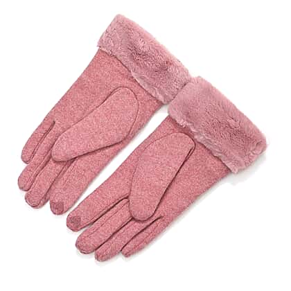 BRAND NEW - 70 % Cashmere Blend Gloves with Ultra soft Faux Fur Cuff (One Size) with touch screen tech - Pink