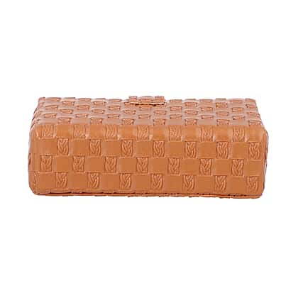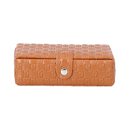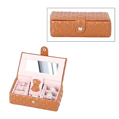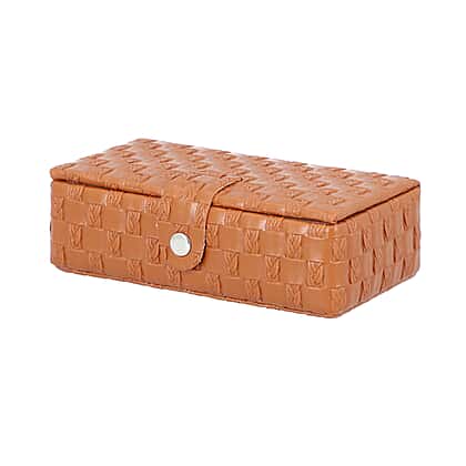 Brown Woven Pattern Jewellery Box with Mirror and Button Clasp Lock (14x8x4.2cm)