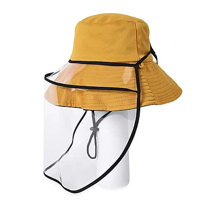 Bucket Protection Hat with Detachable Safety Protective Face Eye Covering Shield Screen in Yellow and Black Colour