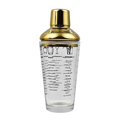 Craft the perfect cocktails at home with the Alpina Cocktail Shaker Set. This professional-quality, 3-piece shaker is ideal for both beginners and seasoned mixologists. Its 500ml capacity features a clear glass design with a built-in ml scale, making it easy to measure ingredients accurately. The gold-coloured lid has a silicone seal, integrated strainer, and sealing cap to ensure a spill-free experience. The shaker is adorned with six classic cocktail recipes, including pina colada and margarita, so you can easily impress guests. Whether mixing up a mojito or a cosmopolitan, this shaker set brings the bar to your kitchen.