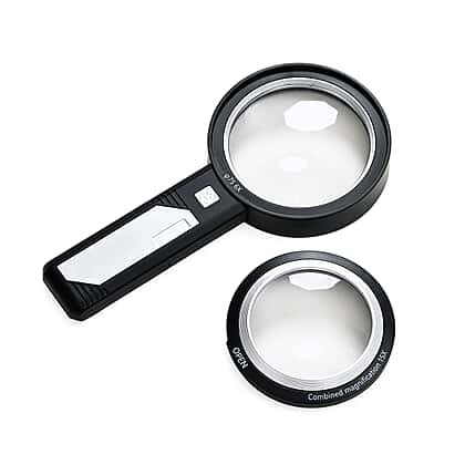 Combination Handheld Magnifying Glass (3xAAA Batteries Not Inc.) - Silver & Black