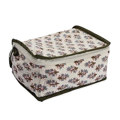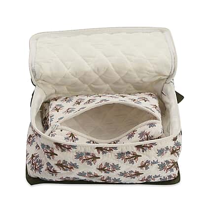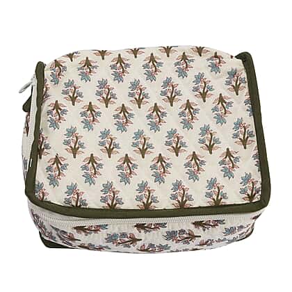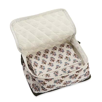 Traditional Floral Print Cotton Quilted Makeup Bag Size 15x7x14 Cm Black and White