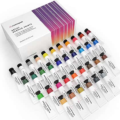 Creativepeak Acrylic Paint Set- 36 Piece Set with 6 New Metallic Colors