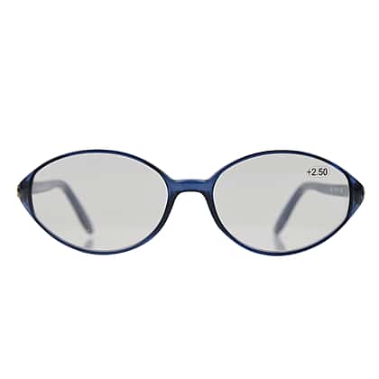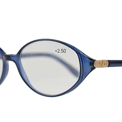 Designer Closeout - VALENTINO Rectangular Unisex Oval Readers (Power 3.00) - Blue Heather