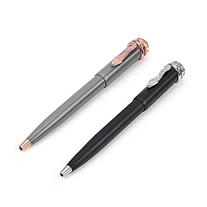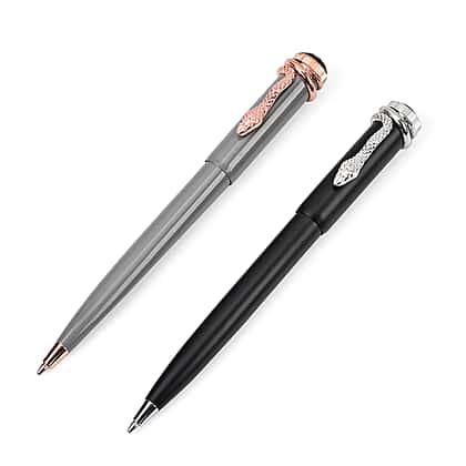 Designer Inspired Collection - Set of 2 Snake Clip Ball Point Pen - Grey & Black