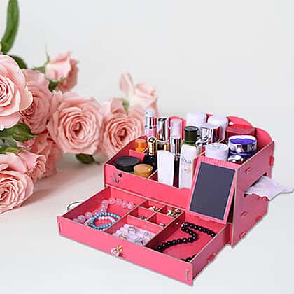 DIY Jewellery and Cosmetic Organiser with Mirror (36x19.5x23cm) - Red