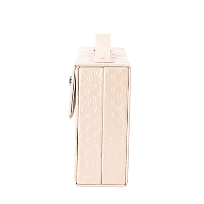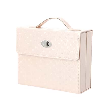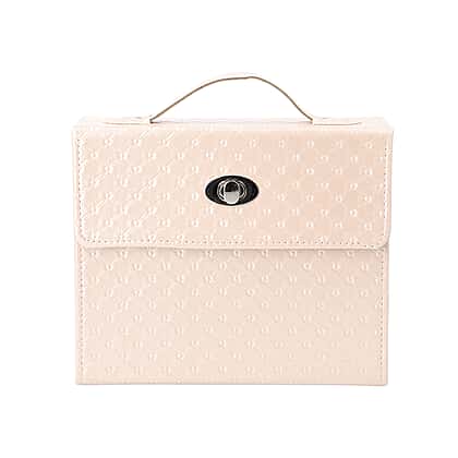 Embossed Quilted Pattern Handbag Style Anti-Tarnish Jewellery Organizer with Inside Mirror and Oval Twist Lock (Size- 22X7.5X18 cm) - Cream