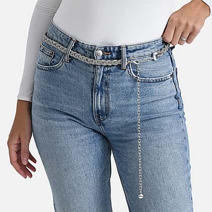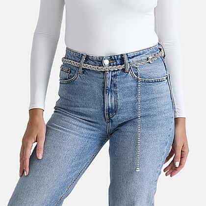 Fiber Belt with Rhinestones (120 cm) - Black & Silver