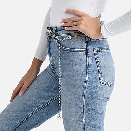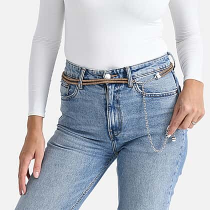 Fiber Belt with Rhinestones (120 cm) - Bronze
