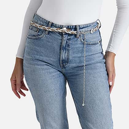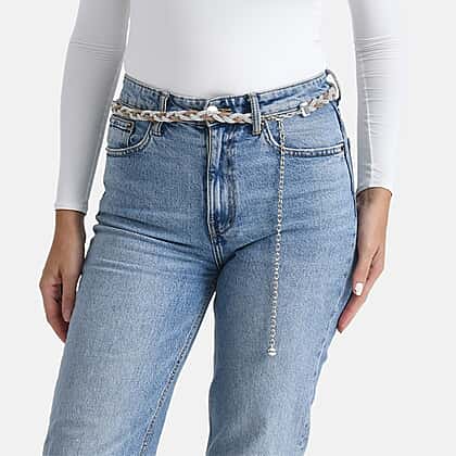 Fiber Belt with Rhinestones (120 cm) - Gold & White