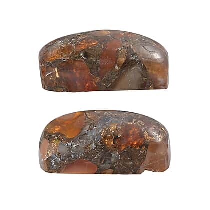 Discover the vibrant energy of the fire opal matrix with this set of 2 cushion-shaped loose gemstones, each measuring 12x8mm. Their lively colours and patterns make them a standout choice for jewellery designs. Fire Opal symbolises passion and creativity.