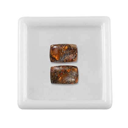 Set of 2 Fire Opal Matrix Loose Gemstone in Cushion Shape (12x8mm)