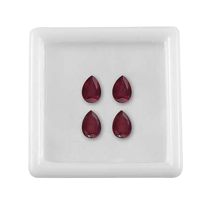 Set of 4 Fissure Filled Ruby Loose Gemstones in Pear-Shaped (7x5mm)