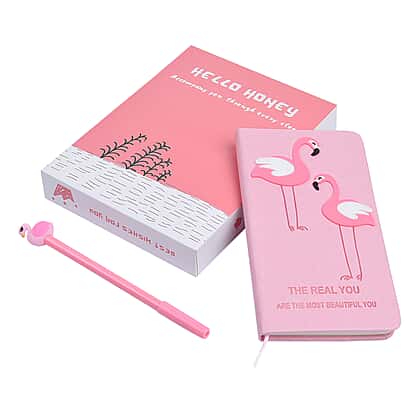 Flamingo Pattern Journal Notebook with 10 Stencils and a Pen (Size 17.8x10 Cm)