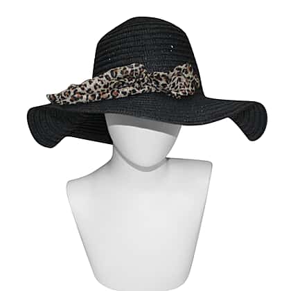 Floppy Sun Hat with Bow Animal Print (57X26 CM ) -Black