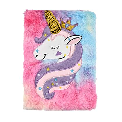 Fluffy Cover 3D Unicorn Pattern Notebook (80 Pages) - Yellow
