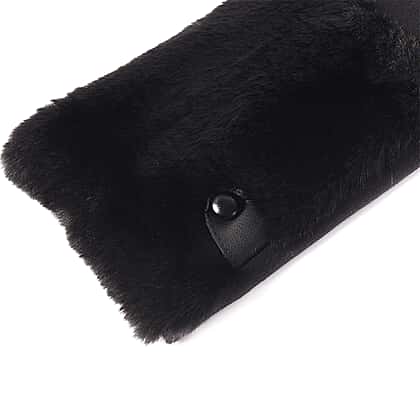 Fluffy Faux Fur Trim Gloves (Size 9x23cm) - Black