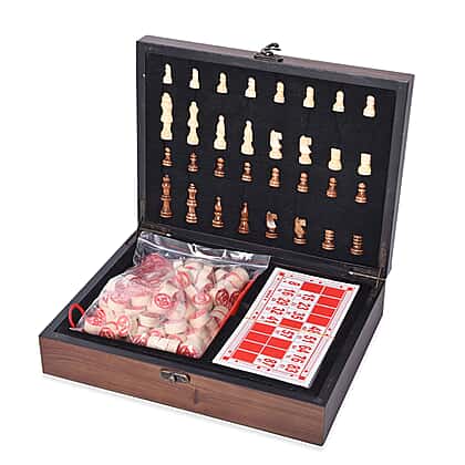 Games Set in Folding Checkerboard Box (includes 32 Chess Pieces, 90 Number Tiles and Tickets)