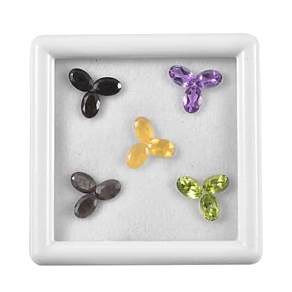 Gem Treasures - Set of 5 - Multi Gemstone Mix 6.25 Ct.(Oval 6x4mm 15pc mix gem box) (Amethyst, Peridot, Silver Sapphire, Black Turmaline & Yellow Opal).