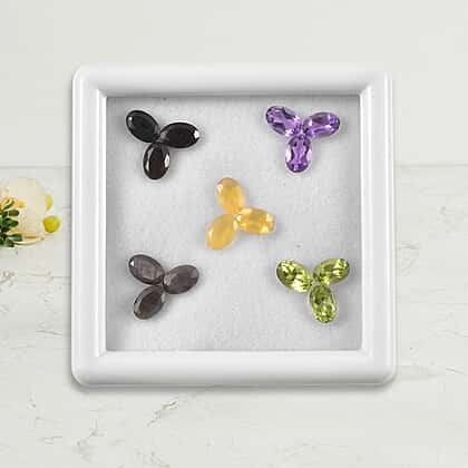A perfect set of 5 multicolour gemstones to gift to your loved ones who love to wear jewellery or collect different jewels. This box contains oval-cut amethyst, peridot, silver sapphire, black tourmaline and yellow opal. You can use these gems to create your jewellery, be it necklaces, rings, earrings or bracelets.
