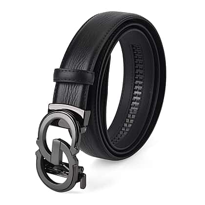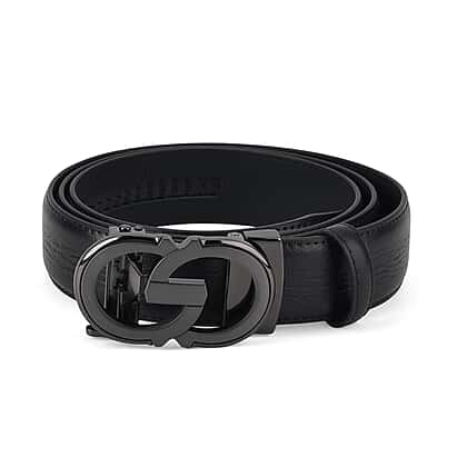 Genuine Leather Designer Belt with Elegant Interlocking Geometric Buckle (115 x 3.5cm) - Black