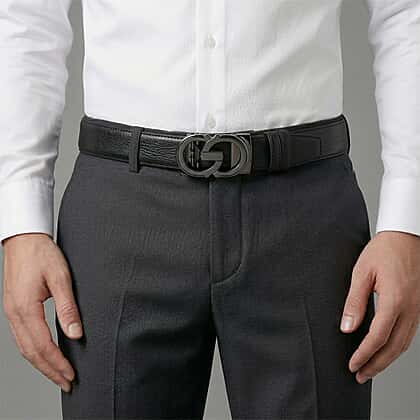 Complete your look with this genuine leather designer belt, created to bring a clean and contemporary finish to any outfit. Made from durable leather, it features a refined textured surface that adds subtle detail while ensuring long-lasting wear. The standout element is the stunning interlocking geometric buckle in a dark gunmetal tone, offering a modern and distinctive focal point. Designed with an adjustable fit, it provides comfort and ease of wear throughout the day. Ideal for pairing with both casual and tailored outfits, this belt delivers a balanced combination of style and practicality.