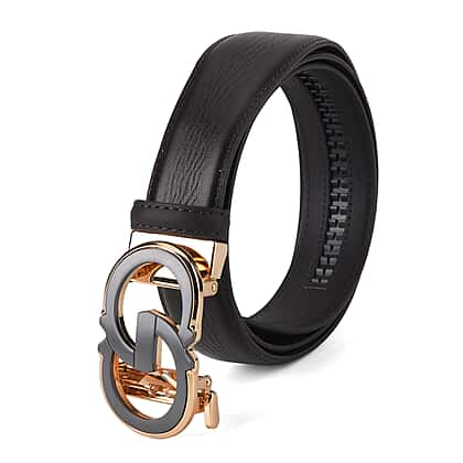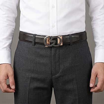 Complete your look with this genuine leather designer belt, designed to deliver a polished and modern finish. Crafted from high-quality leather, it features a subtle grain texture that enhances both durability and visual appeal. The standout interlocking geometric buckle in a polished gold-tone brings a bold, modern detail that elevates the overall design. Designed for everyday comfort, the adjustable fit allows easy wear across different outfits. Finished in a deep dark brown shade, this belt works seamlessly with both formal and casual looks.