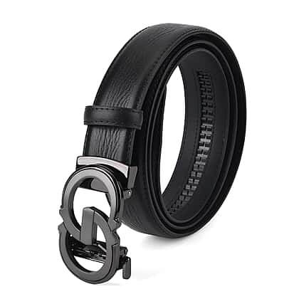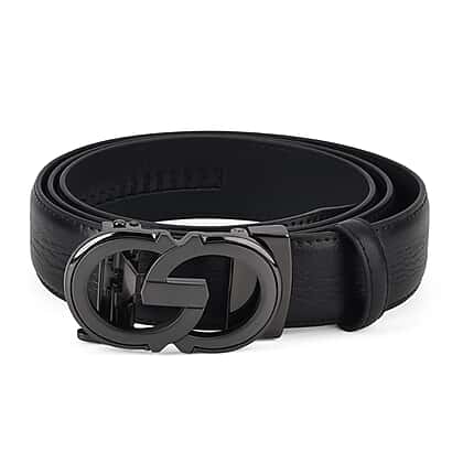 Genuine Leather Designer Belt with Elegant Interlocking Geometric Buckle (130 x 3.5cm) - Black