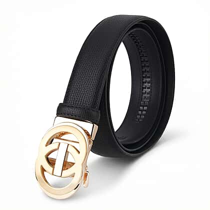 Complete your outfit with this genuine leather designer belt, crafted to add a polished finish to both casual and smart looks. Made from durable leather with a subtle textured surface, it offers a refined appearance while ensuring long-lasting wear. The standout feature is the gold-tone interlocking circular buckle, designed to create a bold focal point and elevate the overall style. The adjustable fit allows for comfortable wear, making it suitable for pairing with trousers, skirts, or dresses. A versatile accessory that combines functionality with a statement finish.