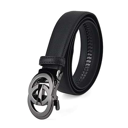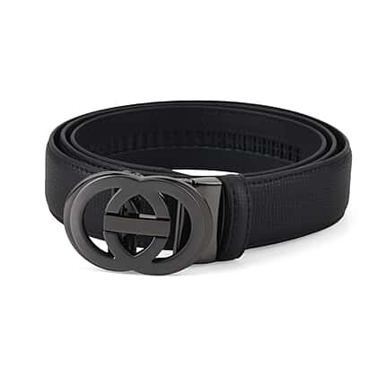 Genuine Leather Designer Belt with Interlocking Circular Buckle (115 x 3.5cm) - Black
