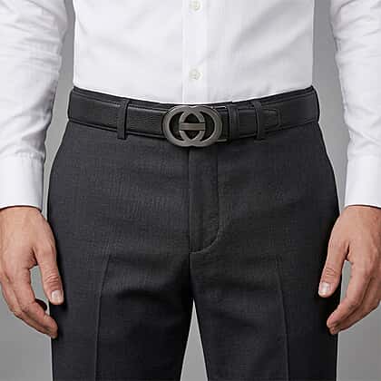 Add a sleek finishing touch to your outfit with this genuine leather designer belt, designed to combine modern styling with everyday functionality. Made from durable leather, it features a refined textured surface that enhances both its appearance and long-term wear. The interlocking circular buckle in a gunmetal-tone finish creates a bold, contemporary focal point, giving the belt a distinctive edge. The adjustable design allows for a secure and comfortable fit, making it easy to wear throughout the day. Suitable for pairing with both casual and tailored outfits, this belt offers a versatile and polished addition to your accessory collection.