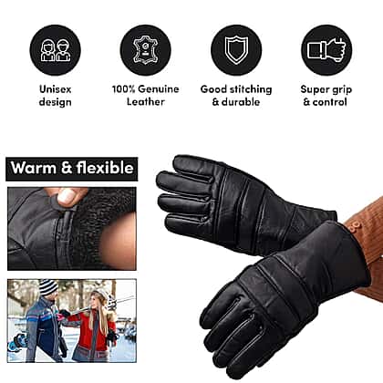 Genuine Leather Warm & Flexible Mens Gloves Black