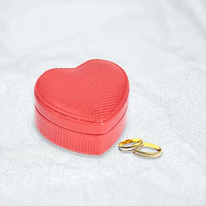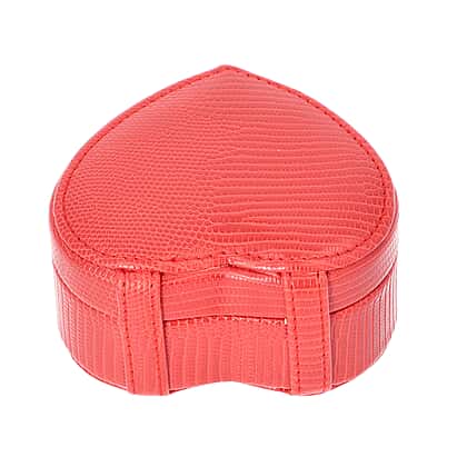 Lizard Skin Pattern Heart Shaped Jewellery Box with Inside Mirror, Ring Rows & 2 Sections - Red