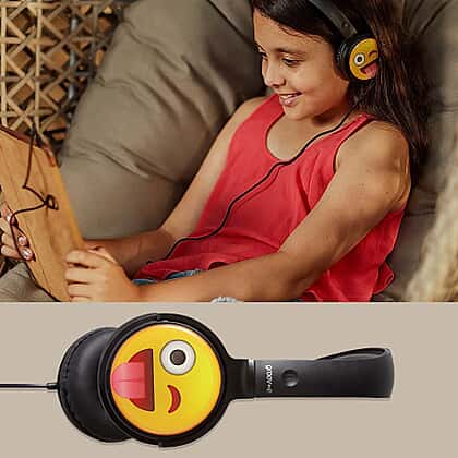 - BRIGHT AND COLOURFUL: The cheeky face emojis makes these headphones a fun addition to your style when you carry them hung at your neck