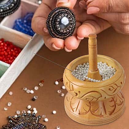 - DESCRIPTION: A hand carved Bead Spinner that comes with a stunning exterior made of haldoo wood and also contains Stainless steel needles