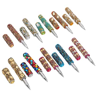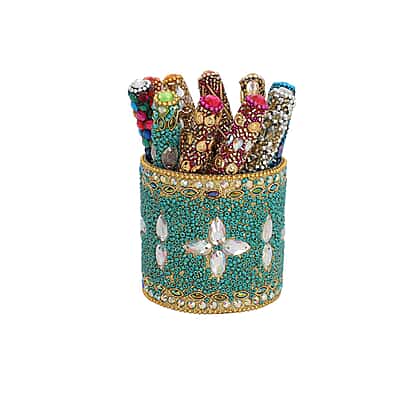 Hand Crafted Green Pen Stand with 10 Pcs of Pens