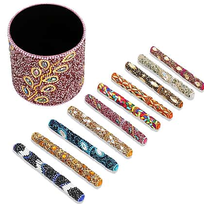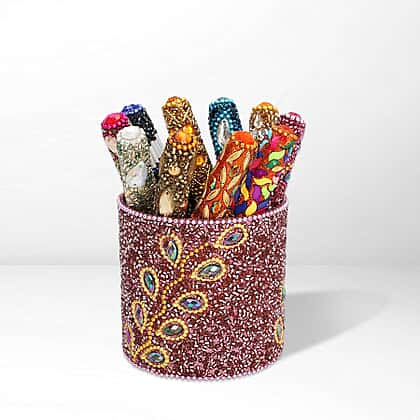 Hand Crafted Pink Pen Stand with 10 Pcs of Pens