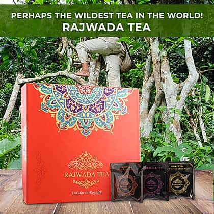 Dive into the rich heritage of tea with our Rajwada Tea Gift Box. This quintessential collection boasts 45 tea bags across three handpicked blends: Wild Smoked Tea with a hint of Turmeric and black Pepper, invigorating Wild Green Tea infused with Cinnamon and ginger, and the classic robustness of Wild Black Tea. Drawing from ancient traditions, each blend is a testament to native artistry, bursting with an untamed flavour that brings you closer to nature. Ideal for the discerning tea lover, it's a sip of pure, natural goodness in every cup.