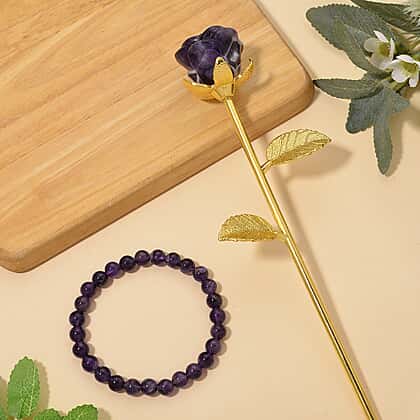 HandCrafted Decor Gift Amethyst Rose in Yellow Gold Tone 225.00 Ct.