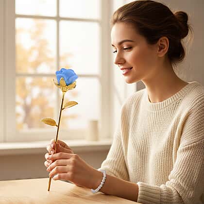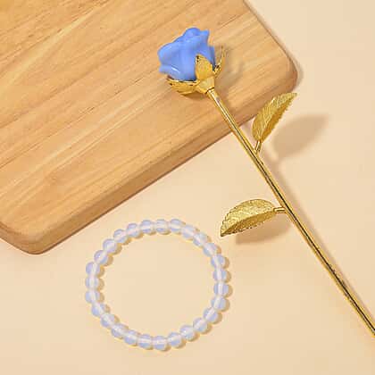 HandCrafted Decor Gift Blue Opalite Rose in Yellow Gold Tone 225.00 Ct.