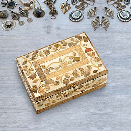 Handmade Bone and Mango Wood Inlay Storage Box Size 15x10x6 Cm