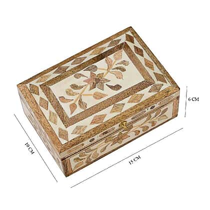 Handmade Bone and Mango Wood Inlay Storage Box (Size 15x10x6 Cm)
